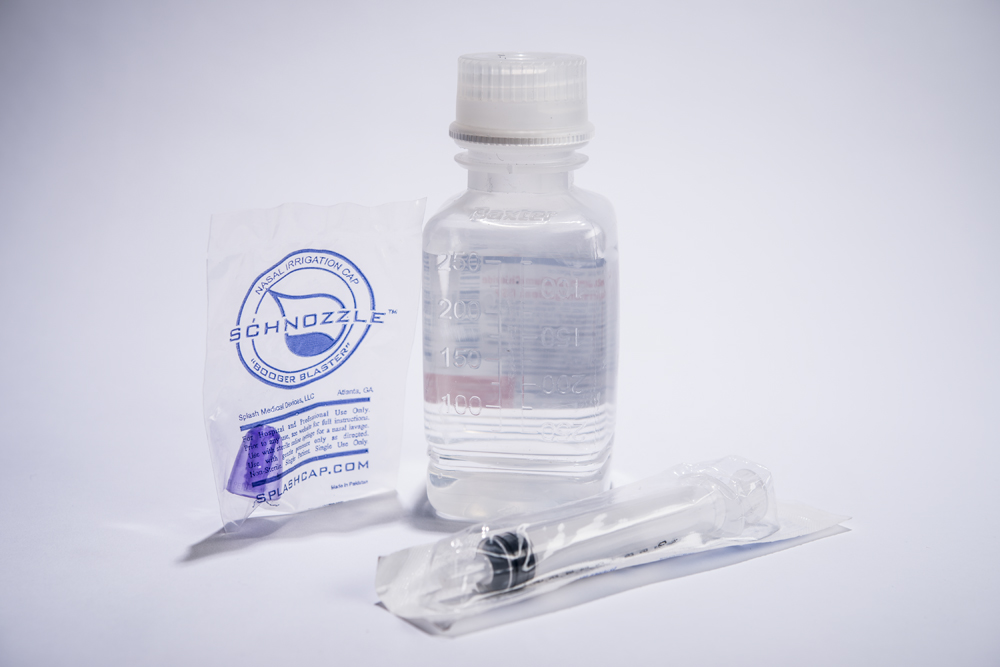 While we recommend that sterile saline be the fluid used with the Schnozzle™ , since the device is not sterile; therefore, the procedure is not sterile. Over the counter products such as neti-pots commonly use non-sterile products and require preparation from non-sterile tap water that must be boiled or distilled. When using the Schnozzle™ as recommended, starting with sterile fluid that is readily available in hospitals is safer and more convenient.